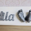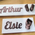 My name signs feature beautifully detailed casts of your child’s hand or feet, mounted with 3D letters to make a personalised sign perfect for hanging on a bedroom wall or giving as a gift to family.
