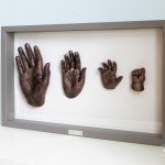 A combination of adult and child casts – these can mix side hand casts for adults or teenagers with feet or hand casts for younger children to make a whole family tree. Casts are mounted either in a frame or on an oak board.